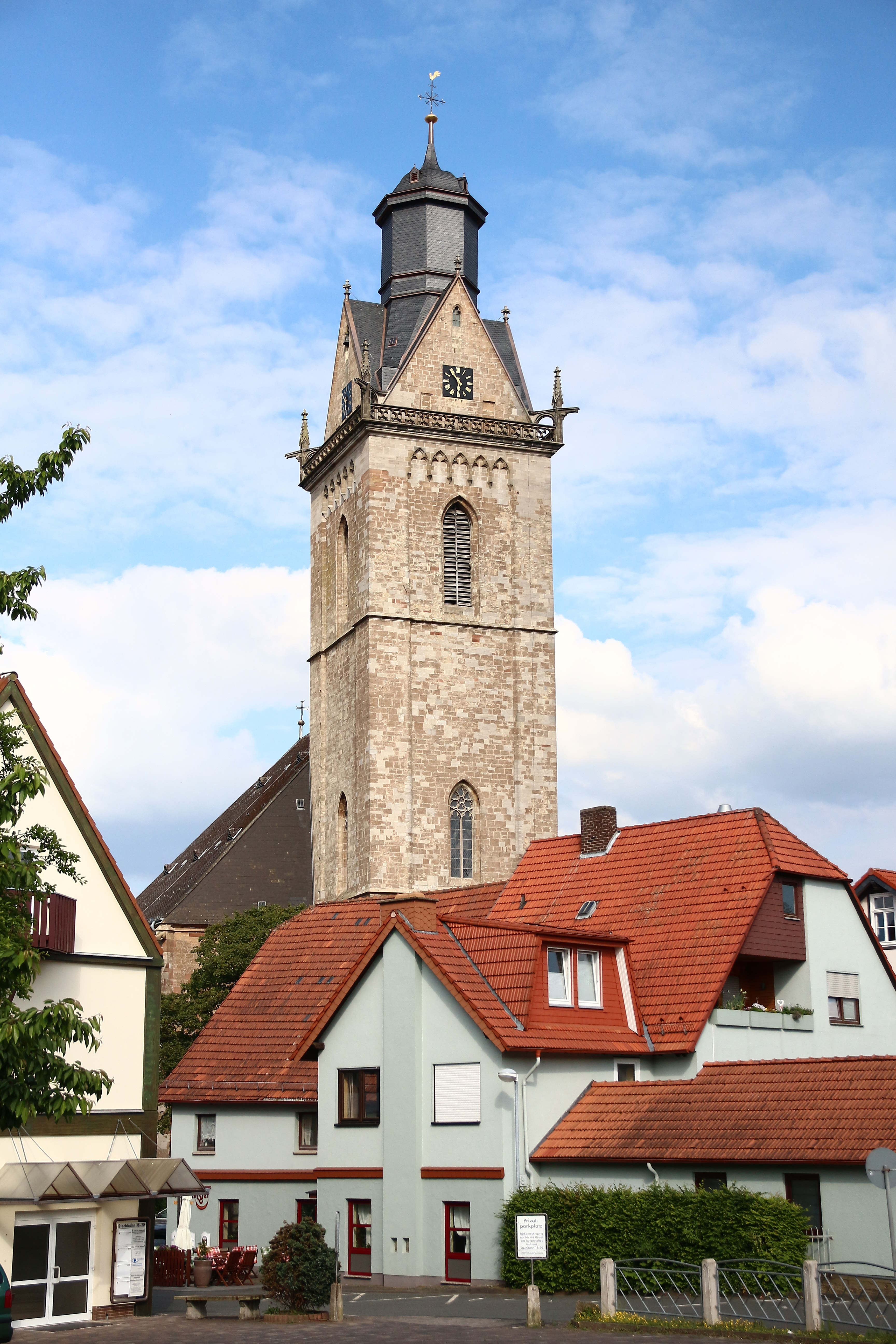 Die Rückseite des Hauses vom Heumarkt aus betrachtet, vor dem Turm der Kilianskirche. Aufnahmedatum: 6. Juni 2015. Anklicken für größere Version. Foto: Frank Löwenstein.